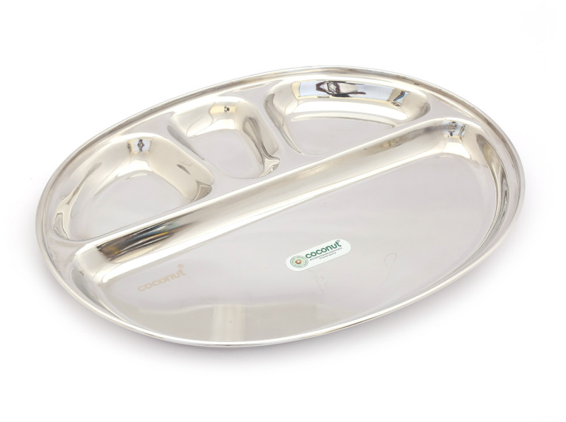 Coconut Stainless Steel Oval Shape Partition Plate – 1 Unit (32 Cm) Dinner Plate is available on Flipkart.