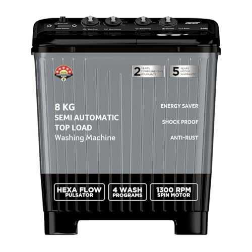 Acer 8.0 Kg 5 Star Semi-Automatic Top Loading Washing Machine(Ar80Sambgl124D, Black-Grey, 4 Wash Programs, Hexa Flow Pulsator, Advanced Lint Filter) is available on Amazon.