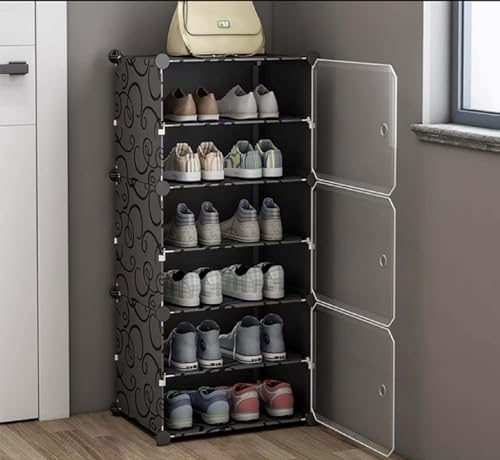 AYSIS Plastic Shoe Rack for Home | ๐ ๐๐ก๐๐ฅ๐ DIY Shoe Rack with Door ๐๐๐ ๐ง๐๐ญ๐ฌ for Home Storage Plastic Box Organizer, Metal Door Frame, Chappal Slipper Sandals Stand (Black, 6-Shelf-3-Door) is available on Amazon.