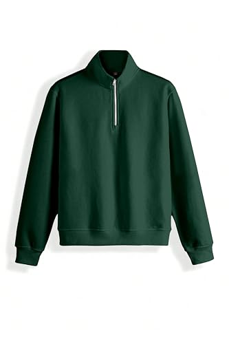 BAGHADBILLO Half Zipper Solid Sweatshirt for Men Dark Green is available on Amazon.