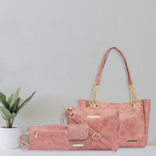 Bagsy Malone Vegan Leather Stylish Tote Bag Pack Of 4 | For College Office Daily Use (Croco Pink) is available on Amazon.