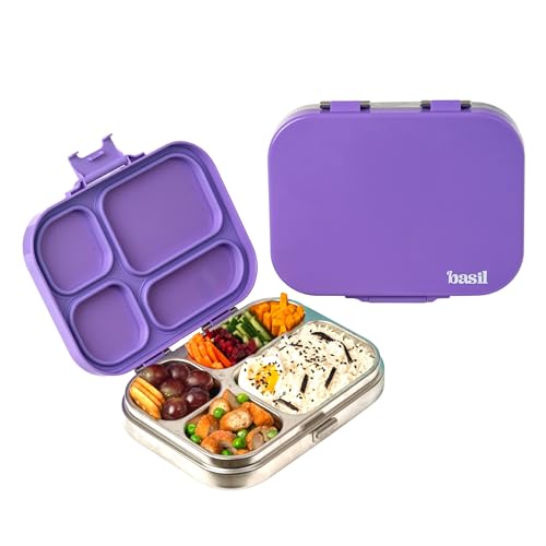 Basil Bento Box Quad – 4 Compartment Stainless Steel Lunch Box With Bpa-Free Plastic Lid | 800 Ml Leak-Proof Tiffin Box For Kids & Adults | Premium School, Office, And Picnic Lunch Box – Purple Pop is available on Amazon.