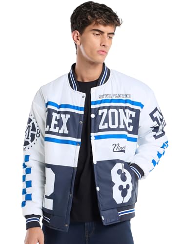 Bewakoof Official Disney Merchandise Mickey Men’s Typography Oversized Fit Full Sleeve Stand Collar Nylon Jacket_684821_White_2XL is available on Amazon.