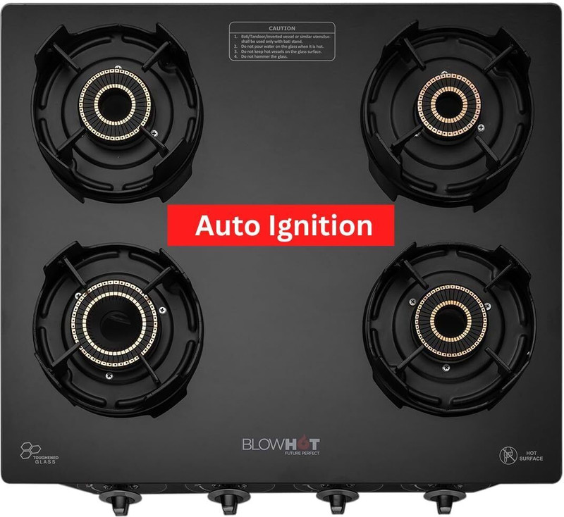 BLOWHOT Premium Emerald Auto Ignition Tornado Brass Burners, 2-Year Warranty, Toughened Glass, Iron Automatic Gas Stove(4 Burners) is available on flipkart.