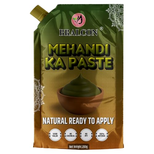 BRALCON Mehandi Ka Paste, Natural Ready to Apply Henna, 200g, Chemical-Free, Body Paint is available on Amazon.