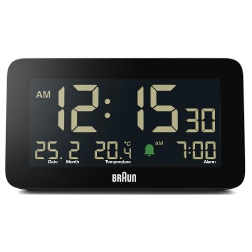 Braun Digital Alarm Clock with Date, Month and Temperature Displayed, Negative L, Plastic, 13 Cm, 7 Cm, Black is available on Amazon.