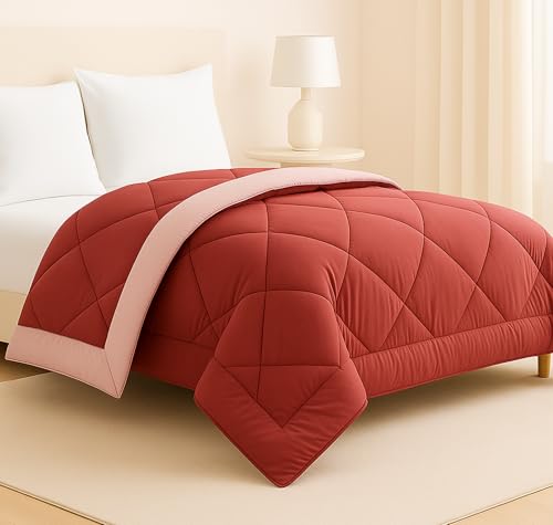 BSB HOME Luxury Reversible Comforter Double Size | Dual Color Soft Quilt for AC Room | Winter & Summer | Rainy Season Plush Microfiber | Solid Color Comforter – 90×100 Inches, Rust & Pink is available on Amazon.