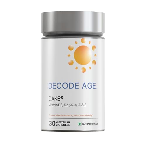 Decode Age Dake® Supplement, Supports Vision, Immunity, Bone, Heart And Skin Health, Vitamin D3, K2 (Mk7), A & E 30 Veg Capsules is available on Amazon.