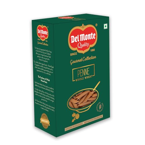 Del Monte Whole Wheat Penne Pasta, 500g | 100% Whole Wheat | Healthy Pasta – No Maida | Gourmet Pasta | High Protein & Fibre | 100% Vegetarian, 0% Cholesterol & Trans Fat is available on Amazon.