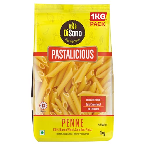 DiSano Penne Pasta, 1Kg, 100% Durum Wheat, No Maida, Source of Protein & Fiber. is available on Amazon.