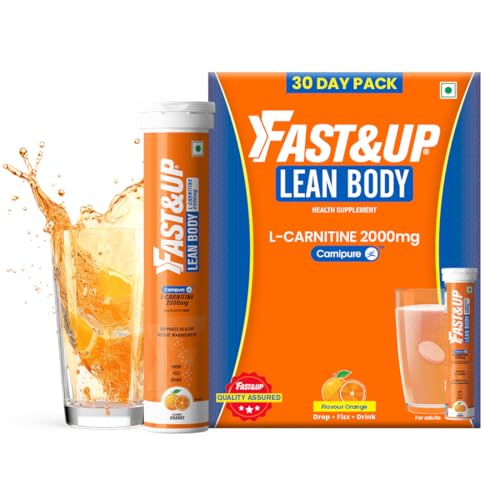 Fast&Up L-Carnitine 2000mg Effervescent Tablets | Premium Carnipure® Carnitine Supplement | Helps Convert Fat into Energy, Supports Weight Loss, Fat Burn & Lean Muscle | Orange Flavour, 20 Tabs (Pack of 3) is available on Amazon.