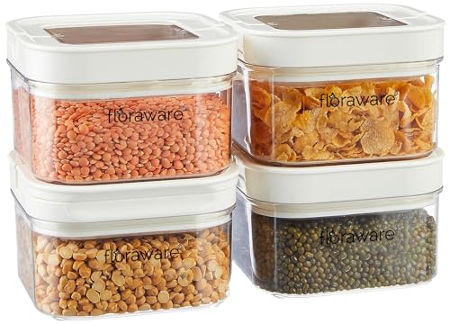Floraware Food Safe Plastic Multiuse Square Lock & Lock Airtight Container,Multipurpose Jar, Grocery Container 450ml, Set 4, BPA Free, White is available on Amazon.