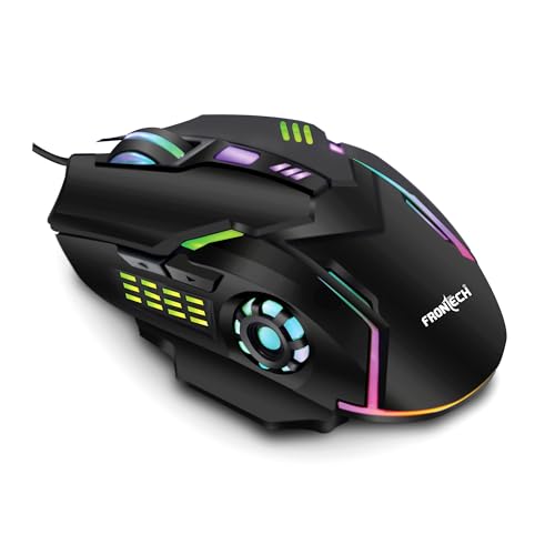 FRONTECH Wired Gaming Mouse, 6 Key RGB Backlit Effect| 7 LED Lighting| USB Plug & Play| 3600 DPI| for PC/Desktop/Mac/Laptop, 1-Year Warranty (MS-0050, Black) is available on Amazon.