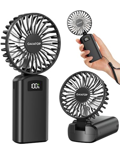 Gaiatop Powerful Hand Fan, Portable Personal Fan Handheld Fan, 3 Speed Foldable Desk Fan with Digital Display, 2000mAh USB Rechargeable Fan for Indoor Outdoor is available on Amazon.