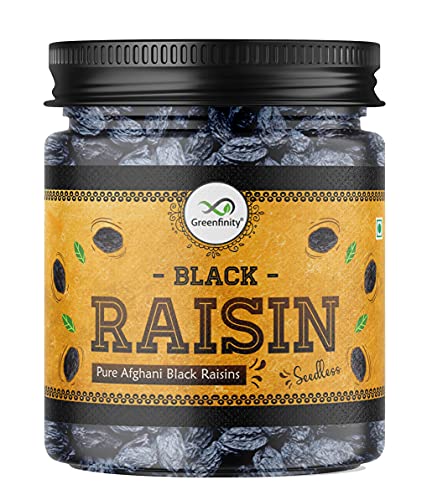 GreenFinity Premium Afghani Seedless Black Raisins – Fresh, 250 Gram is available on Amazon.