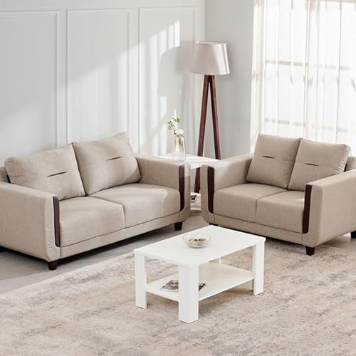 Home Centre 5 Seater Berry Fabric Sofa|Fabric Sofa Set for Living Room|(Beige)|2 Year Warranty