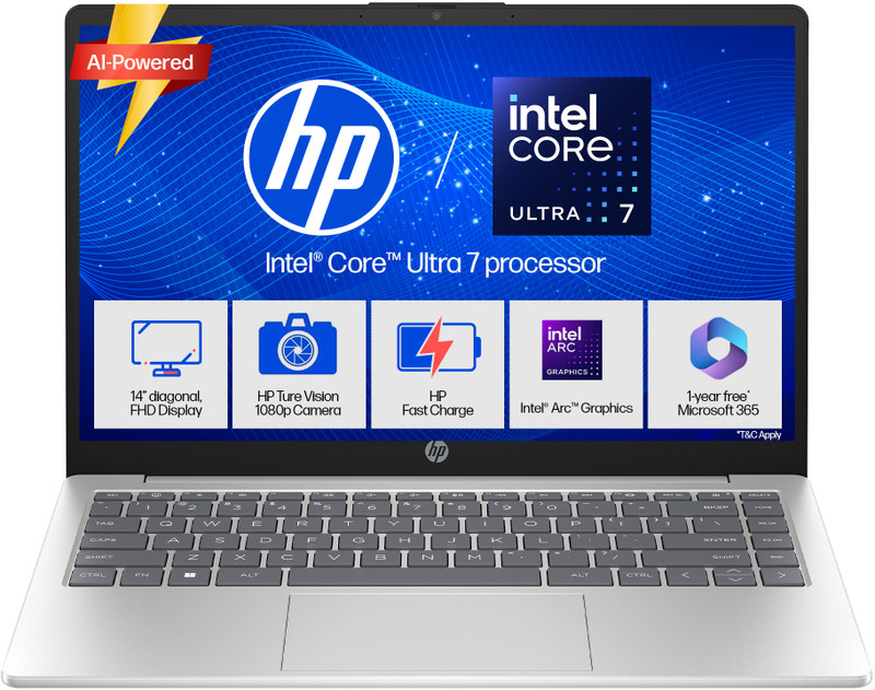 Hp 14 Ai Pc Intel Core Ultra 7 155H – (16 Gb/512 Gb Ssd/Windows 11 Home) 14-Gr1036Tu Thin And Light Laptop(14 Inch, Natural Silver, 1.4 Kg Kg, With Ms Office) is available on Flipkart.