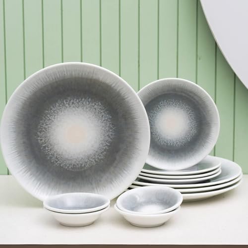 JCPL Fine Porcelain Textures Sway Dinner Set (Set of 12), for Family of 4, Ceramic Crockery Set, Dinner Plates, Kitchen Set for Home, Dining Set for Dinner, Microwave & Dishwasher Safe Plates is available on Amazon.