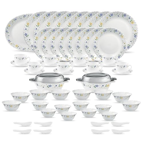 La Opala Diva Classique Collection Opal Glass Crockery | for Family of 8 | Dinner Set 61 pcs Twilight Bouquet | Plates & Bowls for Dining | Microwave Safe | 100% Vegetarian | Extra Strong | White is available on Amazon.
