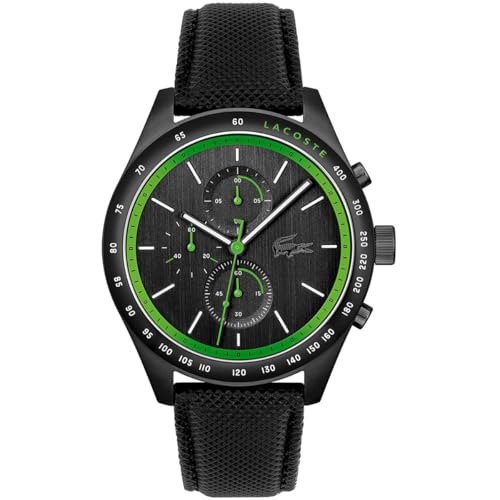 Lacoste Apext Qtz Fashion Chrono Black Round Dial Men’s Watch|Leather Material|Multi Color Band – 2011296 is available on Amazon.