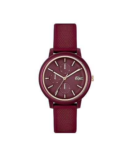 Lacoste Lacoste.12.12 Qtz Multifunction Burgundy Round Dial Women’S Watch|Burgundy Silicone Material|Multicolor Color Band – 2001328