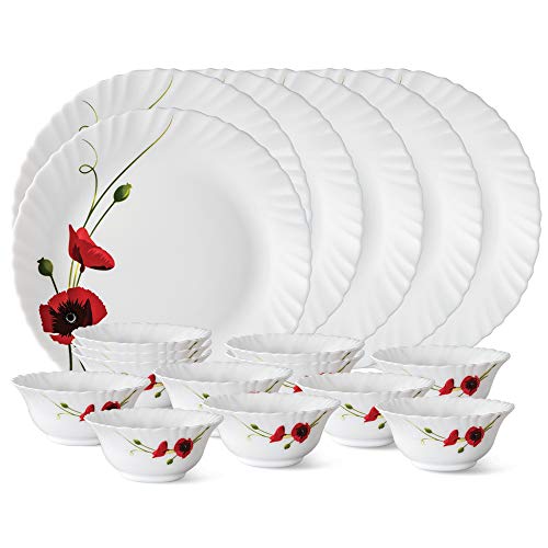 Larah by Borosil Glass Red CarnationThali Set (White) – 18 Pieces is available on Amazon.