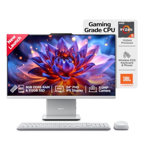 Lenovo Ideacentre AIO AMD Ryzen 5 7535HS 23.8″ FHD IPS All-in-One Desktop(8GB RAM/512GB SSD/Win11/Microsoft 365 Basic + Office Home 2024/3Wx2 Speakers/5MP Camera/Wireless Keyboard & Mouse),F0HR009BIN is available on Amazon.