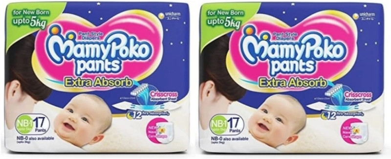 MamyPoko Pants Extra Absorb Diaper- NB Size Pack of 34 Diaper ( NB – 17+17 ) – New Born(34 Pieces) is available on flipkart.