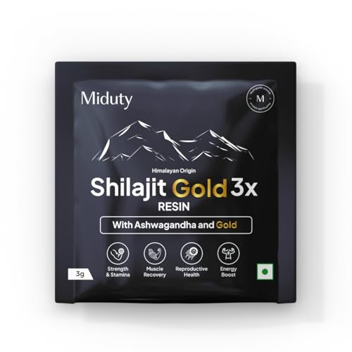 Miduty Shilajit Gold 3X Resin 500–1000mg Serving – Pure Himalayan Shilajit with Gold & Ashwagandha – 100% Ayurvedic – Coffee Free Formula – Lab Tested- 3 grams Sachet is available on Amazon.