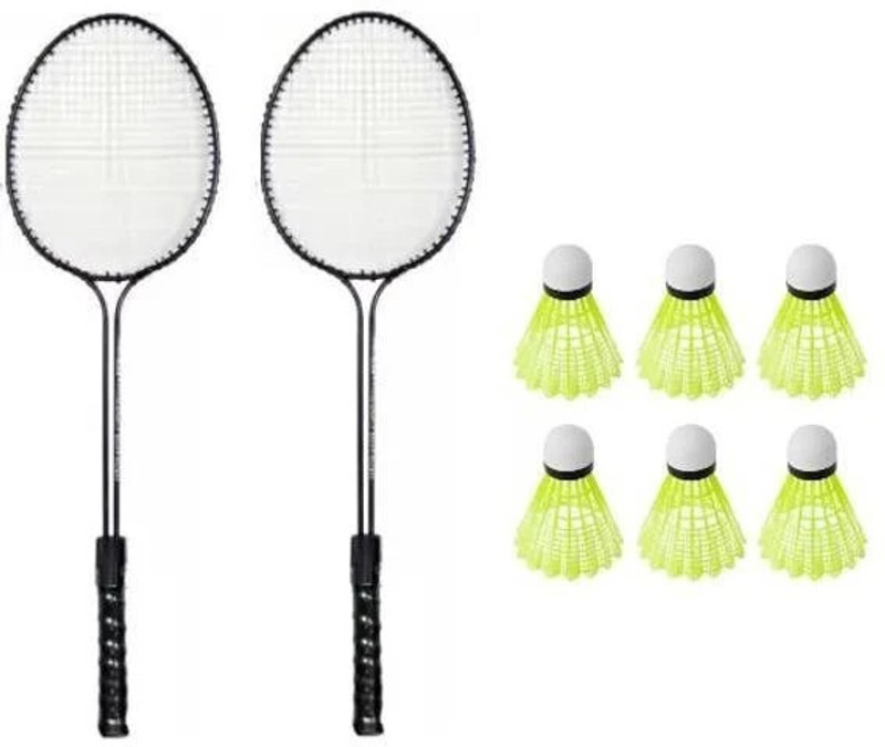 Monika Sports 2 Double Shaft Racquet with 6 pc Nylon Shuttle Badminton Kit