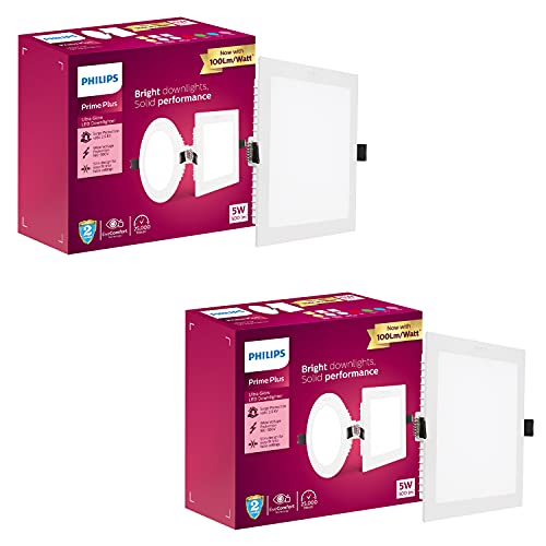 Philips 5W Square Ap Plus Ultraglow Led Dl Recessed Led Panel Ceiling Light (Pack Of 2,Warm White) is available on Amazon.
