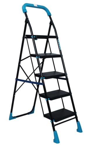 Plantex Stylo Heavy-Duty Mild-Steel Folding 5 Step Ladder for Home with Advanced Locking System/Wide Anti-Skid Step Ladder (Black & Blue) is available on Amazon.