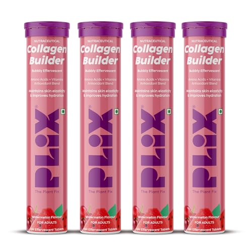 PLIX – THE PLANT FIX Collagen Builder Bubbly Effervescent-15 Capsules (Pack Of 4,Watermelon) For Hydrated Skin & Anti-Aging|Amino Acid Blend For Collagen Production|Vitamin C & E|100% Vegan,4 Count is available on Amazon.