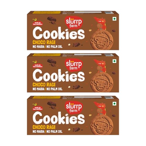 Slurrp Farm No Maida No Refined Sugar Choco Ragi Cookies | Healthy Cookies Made With Multigrain | Perfect for tiffins, travel or snack time | Pack of 3 x 80g is available on Amazon.