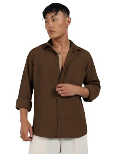 SOLIDPLAY Men's Premium Woven Texture Shirt (in, Alpha, S, Standard, Brown)