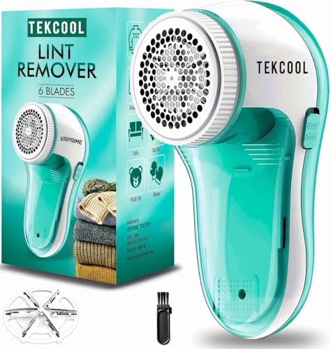 TEKCOOL Lint Remover for Clothes | Electric Fabric Lint Shaver for Sweater, Woolen Clothes and Blankets (6 Blades, 9000 RPM Motor) is available on Amazon.