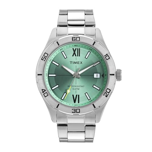 TIMEX Analog Watch for Men with Green Dial & Silver Stainless Steel Bracelet Band – Water Resistant Men’s Wrist Watches -TWEG295SMU01 is available on Amazon.