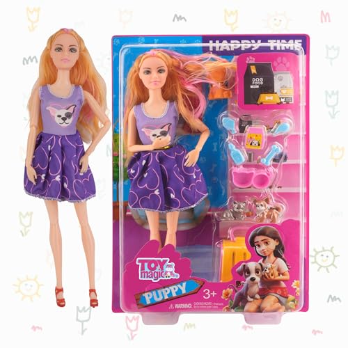 Toymagic Happy Time Doll Playset | 29 Cm Doll With Adorable Puppy & Feeding Dish | Creative Pretend Play Toy For Kids Age 3+ | Educational Roleplay Set | Safe & Durable Gift For Imaginative Kids is available on Amazon.