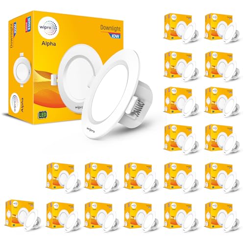 wipro Alpha 10W Round Downlight Junction Box | Cool Day White (6500K) | Glare-Free Design |Recessed Down Light For False Ceiling | Cutout 3 Inch | Pack Of 20-Polycarbonate is available on Amazon.