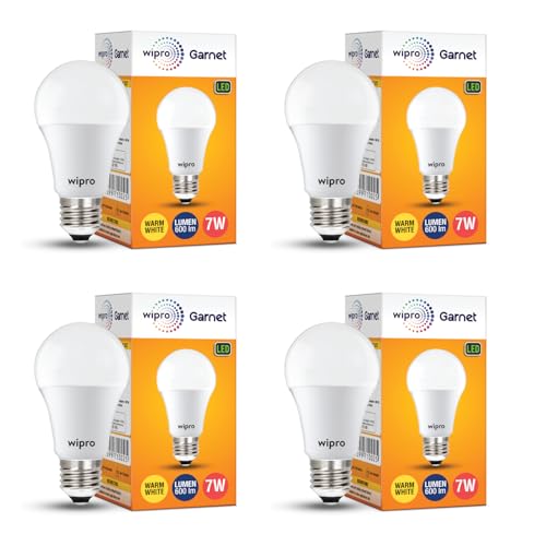 wipro Garnet 7W LED Bulb for Home & Office |Warm White (2700K) | E27 Base|220 Degree Light Coverage |4Kv Surge Protection |400V High Voltage Protection |Energy Efficient | Pack of 4 is available on Amazon.