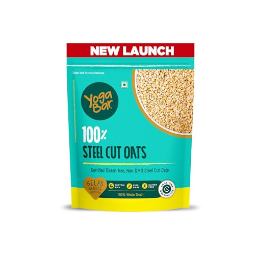 Yogabar Steel Cut Oats 750g | 100% Whole Grain, Gluten-Free, High Fiber, Non-GMO, Protein-Rich, No Sugar Added is available on Amazon.