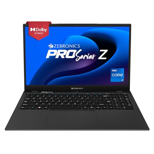 ZEBRONICS PRO Series Z NBC 5S, Intel Core 12th Gen i7 Processor 16GB RAM & 512GB SSD Laptop, 15.6 Inch (39.6CM), IPS 180° Display, Dolby Atmos, 38.5Wh Large Battery, Windows 11, Space Grey, 1.76 Kg is available on Amazon.