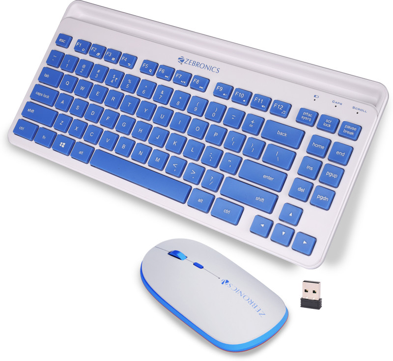 ZEBRONICS ZEB-Companion 114 Wireless Keyboard and Mouse (WHITE+BLUE) Wireless Standard Desktop Keyboard Compatible with Desktop, Laptop, Mac ZEB-Companion 114 Wireless Keyboard and Mouse(White + Blue) is available on flipkart.