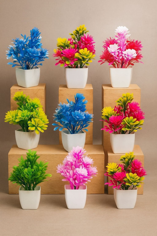 Zupito Combo of 9 Artificial Flower Pots for Home & Office Table Decoration Artificial Plant with Pot(14 cm, Multicolor) is available on flipkart.